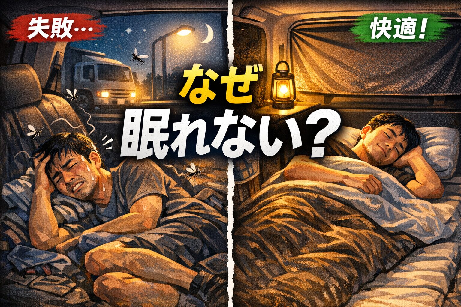 🟥 NG/OK比較図解|なぜ初めての車中泊は眠れないのか