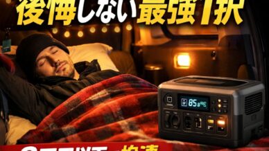 車中泊でポータブル電源は本当に必要?電気毛布・調理・家電など具体的な使い道から、いらない人の特徴、最適容量、充電方法、コスパまで徹底解説。迷ったら1000Whが後悔しない最適解。