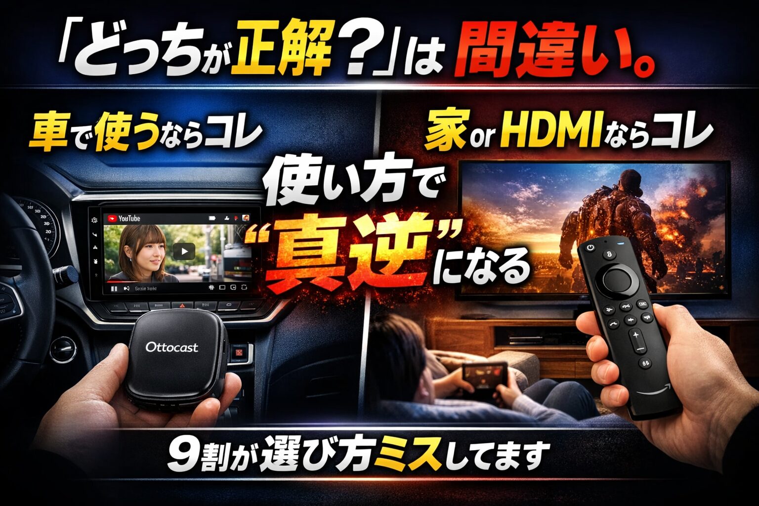 結論:配線・キャンセラーなしで確実に使いたいならオットキャスト、条件を理解して安く済ませたいならFire TV Stickが正解です。